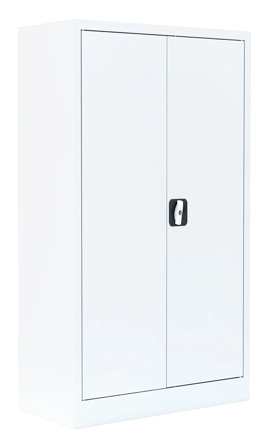 Stahl-AktenschrankLanglebige, pflegeleichte, verschweißte Stahl-Konstruktion 4 Fachböden, 4,5 Ordnerhöhen Schranktüren jeweils rechts und links angeschlagen, an gefederten Stiftscharnieren befestigt, mittig schließend Kastenverstärkung für eine erhöhte Türstabilität Flexible Nutzung als Aktenschrank oder Regal durch herausnehmbare Flügeltüren Geräuschdämpfende Kunststoff-Türanschlagspuffer serienmäßig Individuelle, flexible Innen-Einteilung durch höhenverstellbare Einlegeböden, im 5 cm-Raster Tragkraft der herausnehmbaren Einlegeböden bis zu 65 kg Einlegeböden serienmäßig in Korpusfarbe ausgeführt 2-Wege-Schubstangenzylinderschloss mit Drehgriff, inkl. 2 Schlüssel Korpus und Türen elektrostatisch, glatt pulverbeschichtet Qualität und Sicherheit Komplett verschweißt, keine Montage erforderlich, nur Fachböden müssen eingelegt werden Maße: 1800 x 800 x 383 mm (HxBxT)