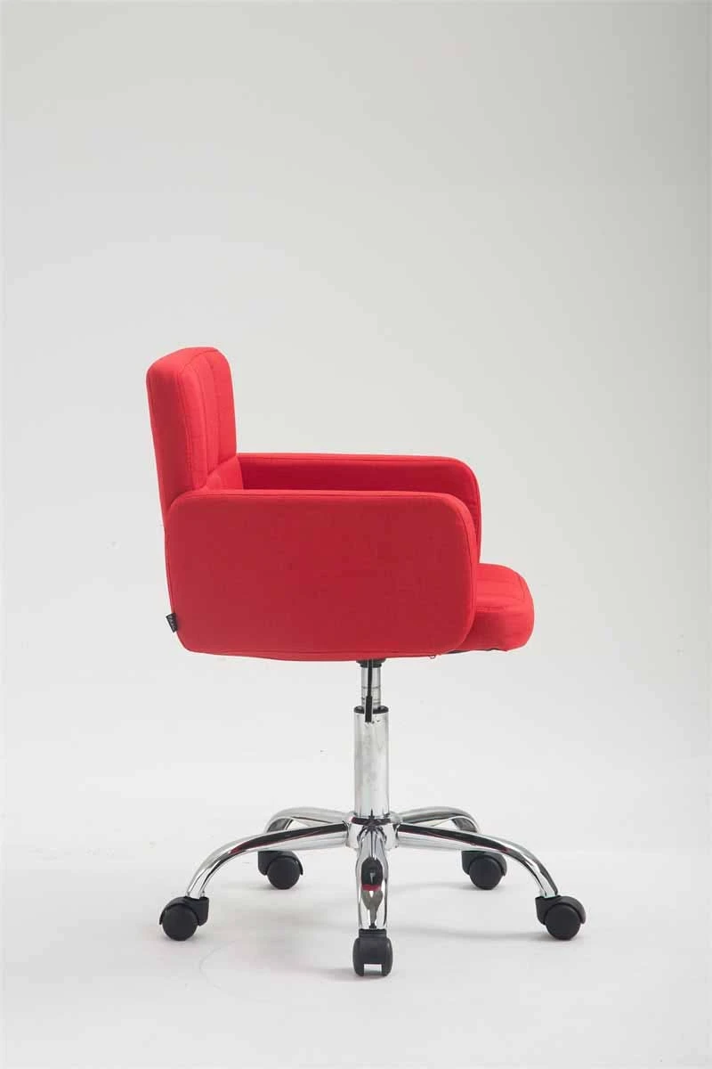 Der Sitz ist mit Stoff bezogen, welcher mit besonderer Steppung versehen ist und diesem Drehstuhl seinen exklusiven Look verleiht. Zudem ist der komfortable Drehhocker stufenlos höhenverstellbar und dank der pflegeleichten Materialien ist der Los Angeles schnell und einfach zu reinigen. Standsicher und stabil steht er auf einem Gestell aus Metall in Chromoptik. Versehen mit fünf Leichtlaufrollen kann man leicht und locker über jeden Boden rollen, egal ob Hart- oder Teppichböden.