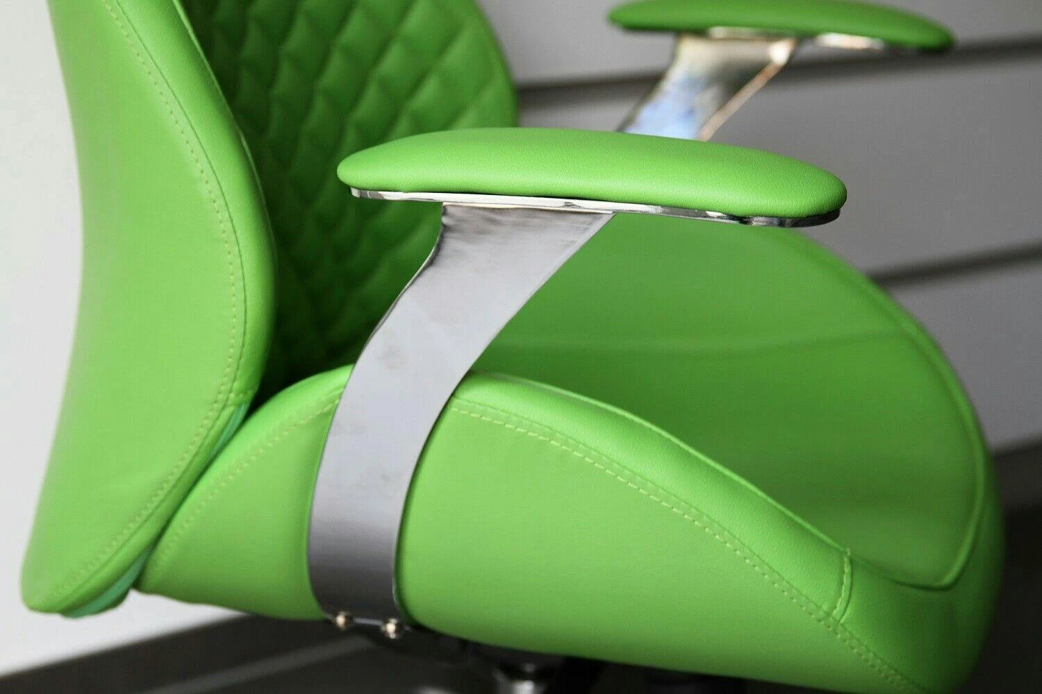 Werte erhalten und Wertvolles erschaffen steht hinter dieser Idee. Design erschaffen, dass die schlichte Eleganz und Faszination klassischer Automobile in sich vereint und für den täglichen Gebrauch nutzbar macht. Holen Sie sich ein Stück moderne klassische Automobilgeschichte nach Hause mit diesem bequemen, handvernähten Chefsessel / Büro-Drehstuhl im Sportsitz-Design, dieser eignet sich sowohl für den Home-Office-Bereich, als auch für den professionellen Büroarbeitsplatz. Dieser erstklassig verarbeitete Büro-Drehstuhl mit ergonomisch geformten Sitz und hoher Rückenlehne die in der Neigung und Höhe verstellbar ist (Wippfunktion). Bezug: handvernähtes Kunstleder, Armelehnen aus verchromten Stahl, Fußkreuz aus Aluminium inkl. großen Rollen mit erstklassigem Sitzkomfort für eine tägliche Sitzdauer von bis zu 8 Stunden Empfohlene Sitzdauer: 8h/Tag Sitzart: Spezial – Schalensitz zur optimalen Abstützung im Beckenbereich Rückenlehne: Spezial – Schalensitz ergonomisch geformt für das perfekte Sitzgefühl mit Wipptechnik XXL Fußkreuz: Formschönes und stabiles Fußkreuz aus Aluminium, Durchmesser 70cm hohe Sitztechnik: Permanentkontakt, stufenlos arretierbar Sitzhöhenverstellung: ja/stufenlos Armlehnen: Stahl verchromt, Armlehnen Bezug KunstlederSitzgröße aussen: (BxT) ca. 56 x 52cm Sitzgröße innen: (BxT) ca. 42 x 49cm Sitzhöhe: 43 – 52,5cm Gesamthöhe: 115-123cm Gewicht: 20,5kg Rollen: Durchmesser Kunstleder in Karo Stepp 100% Polyurethan