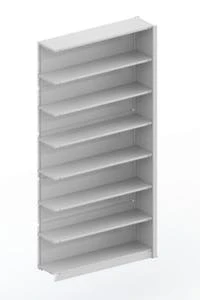 Büroregal, Bauteil Regalfeld, Stecksystem, Höhe x Breite x Tiefe 2250 x 820 x 325 mm, Feldlast 350 kg, Fachlast 60 kg, Fachbreite 800 mm, 6 Ebene(n) mit Stahlboden, Nutzung einseitig, mit Rückwand, Holz/Stahlkonstruktion, Korpus mit Melaminharzbeschichtung in weiß, Ebenen mit Pulverbeschichtung in weiß, Lieferumfang 1 Seitenwange, 1 Rückwand, Ebenen gemäß Angebot. Bitte beachten Sie: Die Abbildung ist dem Produkt ähnlich.