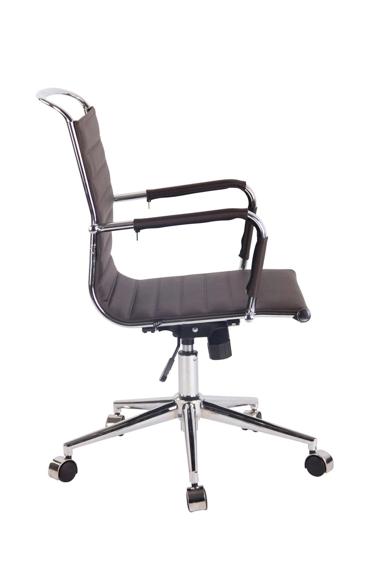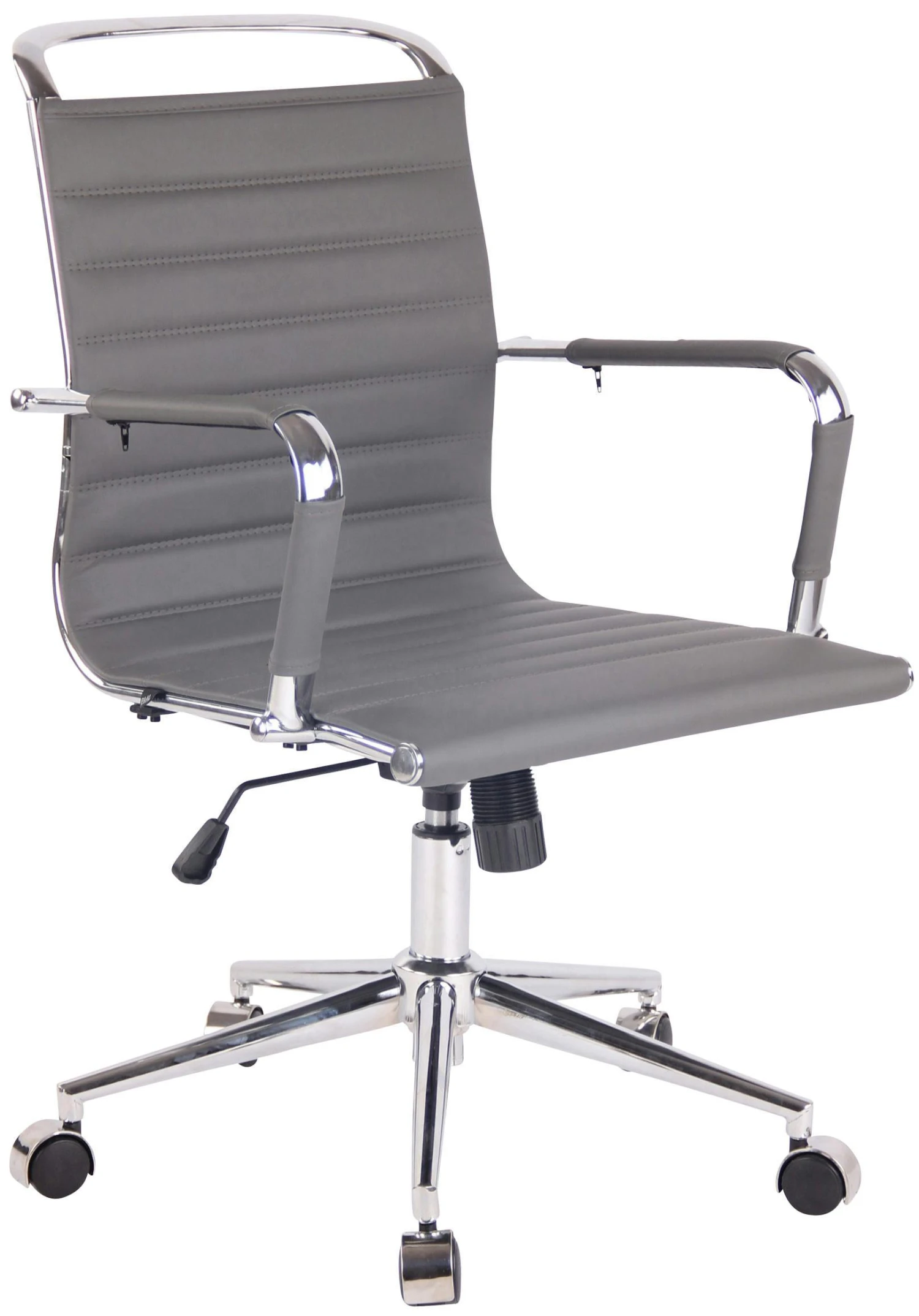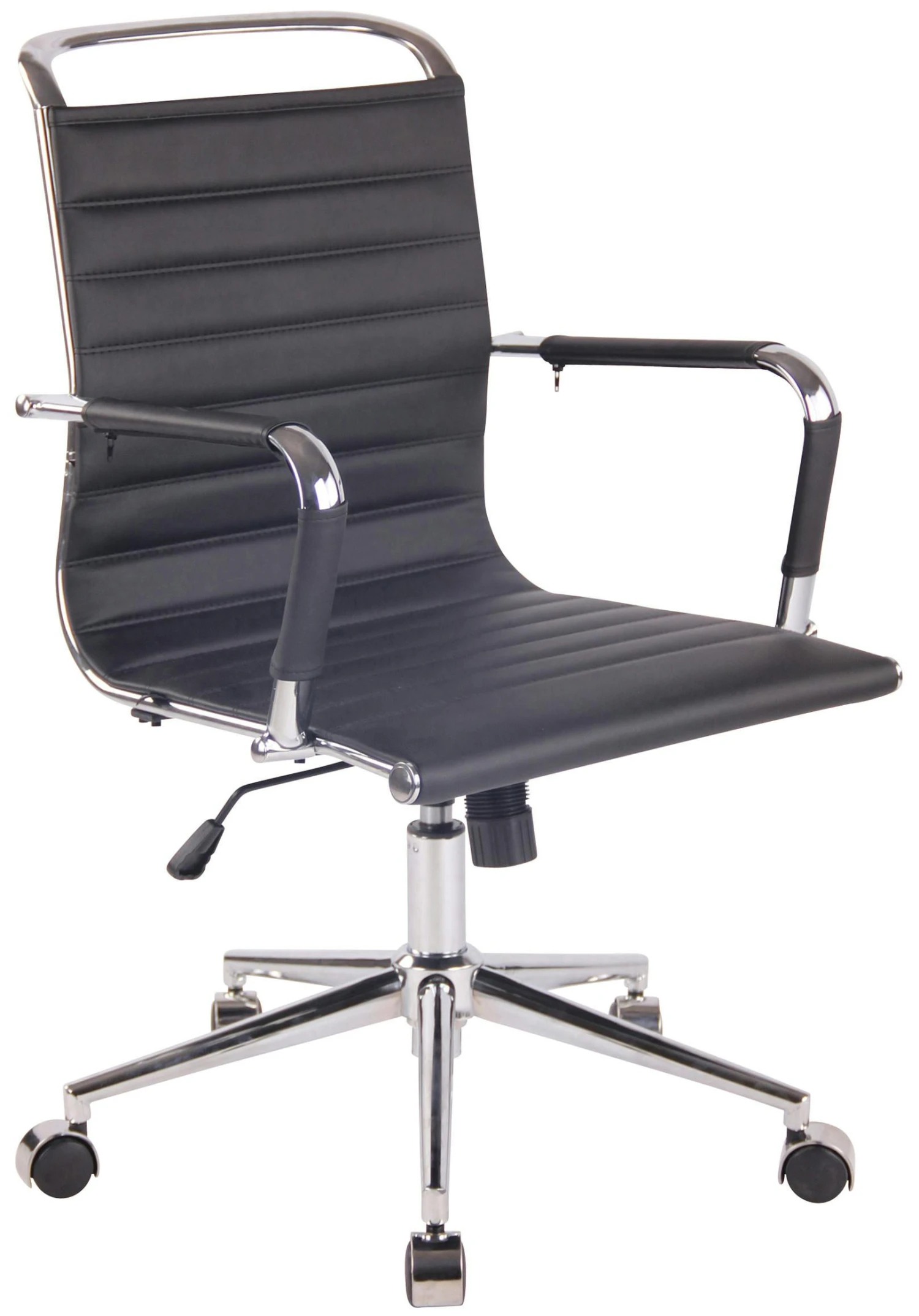 Dieser Bürostuhl Barton überzeugt nicht nur mit seinem modernen Look, auch in Sachen Komfort kann ihm keiner etwas vormachen. Der Drehstuhl ist wahlweise mit einem Kunstleder-, oder Echtlederbezug versehen und besonders pflegeleicht. Zudem ist die Sitzhöhe stufenlos verstellbar und garantiert ein ergonomisches Sitzen. Des Weiteren ist der Schreibtischstuhl mit einem Wippmechanismus versehen, der für mehr Bewegungsfreiheit sorgt. Die Stabilität ist durch das Metallgestell in Chromoptik gewährleistet. Durch die fünf Leichtlaufrollen kann man leicht und locker über den Boden rollen – egal ob auf Hart- oder Teppichböden. Das elegante Chromgestell und die stabil geschwungenen Armlehnen geben dem Ganzen noch das gewisse Extra und runden das Design ab.