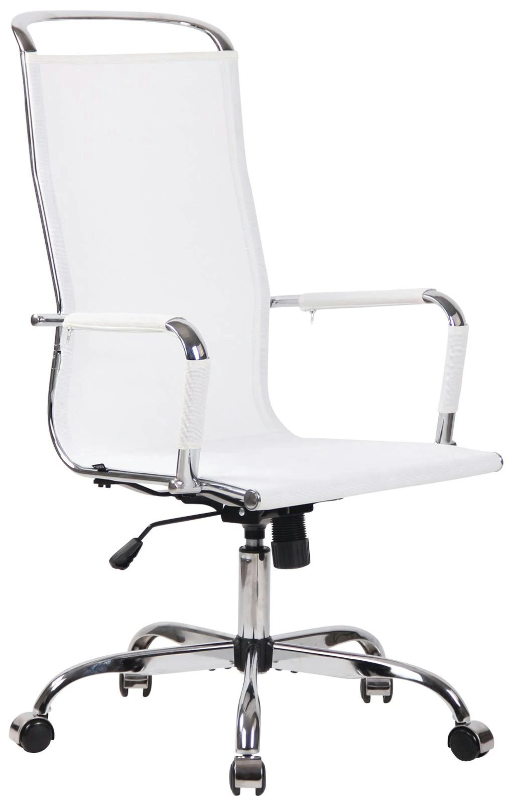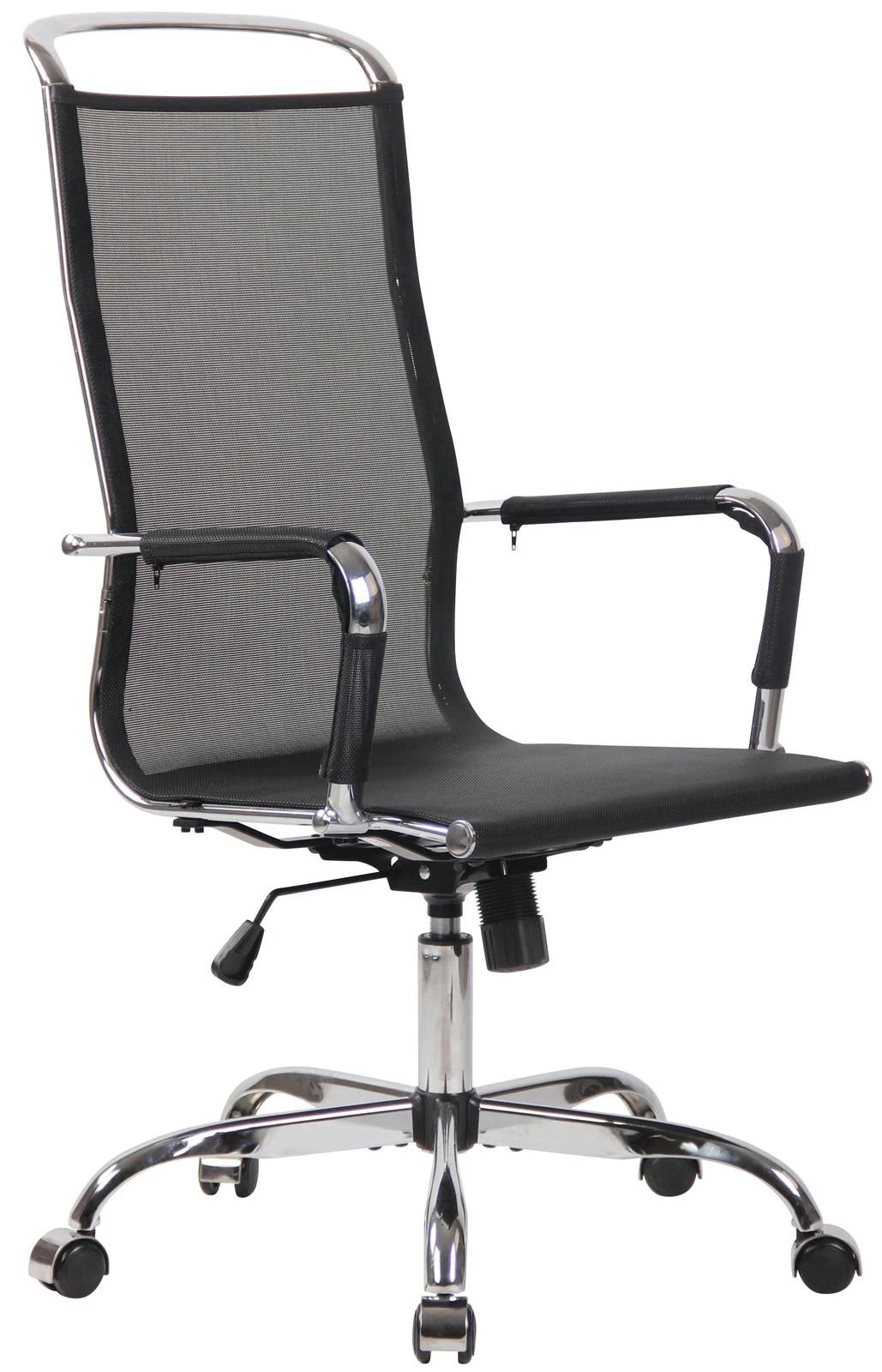 Der Bürostuhl Branson überzeugt nicht nur mit seinem modernen Look, auch in Sachen Komfort kann ihm keiner etwas vormachen. Der Drehstuhl ist mit einem atmungsaktiven Netzbezug versehen und besonders pflegeleicht. Zudem ist die Sitzhöhe stufenlos verstellbar und garantiert ein ergonomisches Sitzen. Des Weiteren ist der Schreibtischstuhl mit einem Wippmechanismus versehen, der für mehr Bewegungsfreiheit sorgt. Die Stabilität ist durch das Metallgestell in Chromoptik gewährleistet. Durch die fünf Leichtlaufrollen kann man leicht und locker über den Boden rollen – egal ob auf Hart- oder Teppichböden. Das elegante Chromgestell und die stabil geschwungenen Armlehnen geben dem Ganzen noch das gewisse Extra und runden das Design ab.