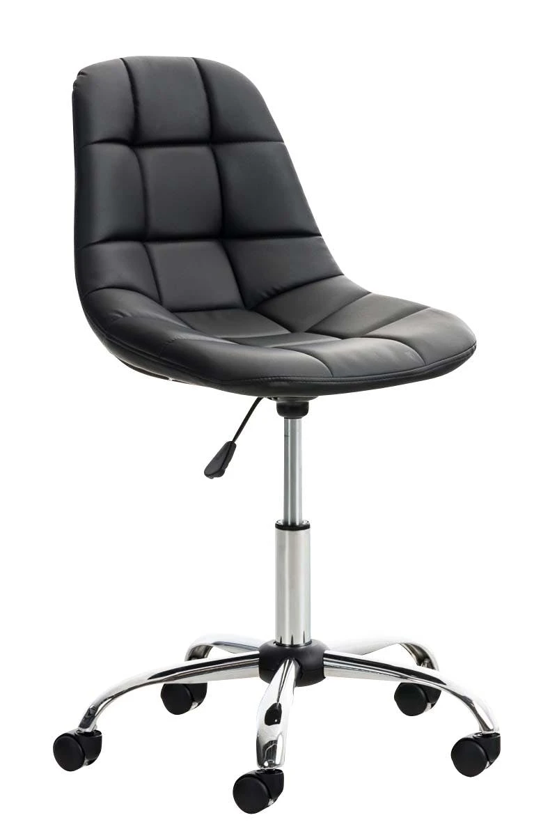 Der Bürostuhl Emil besticht durch seine komfortable Polsterung und einen schlanken, rundlichen Look. Rechteckige Ziernähte und klare Farbvarianten machen den Bürostuhl zum optischen Highlight an jedem Arbeitsplatz. Der filigrane Sitz ist mit einem Kunstlederbezug überzogen und dank einer stufenlos verstellbaren Sitzhöhe ist das ergonomische Sitzen garantiert. Dabei steht er standsicher auf fünf Leichtlaufrollen und einem Gestell aus Metall in Chromoptik. Egal ob Hart- oder Teppichböden – man kann immer leicht und locker über den Boden rollen.