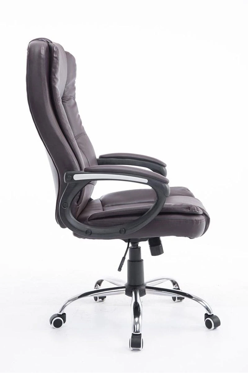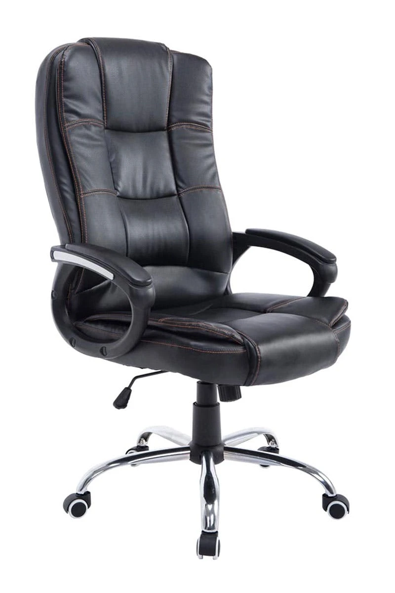 Der Chefsessel Enno ist ein exklusiver Bürostuhl mit einer sehr hochwertigen Polsterung und Kunstlederbezug. Kunstlederbezüge haben den Vorteil, dass sie elastisch sind und sich bei Entlastung wieder glatt ziehen. Dies sieht nicht nur schöner aus, sondern erhöht zusätzlich die Lebensdauer des Sitzbezuges. Das Gestell aus Metall in Chromoptik ist sehr stabil. Dank der verstellbaren Sitzhöhe ist ergonomisches Sitzen garantiert. Die Sitzhöhe ist mit dem Hebel unter dem Sitz stufenlos verstellbar. Der eingebaute Wippmechanismus sorgt für mehr Bewegungsfreiheit.Der Bürostuhl steht standsicher auf fünf Leichtlaufrollen. Egal ob Hart- oder Teppichböden – Sie werden immer leicht und locker über den Boden rollen können.