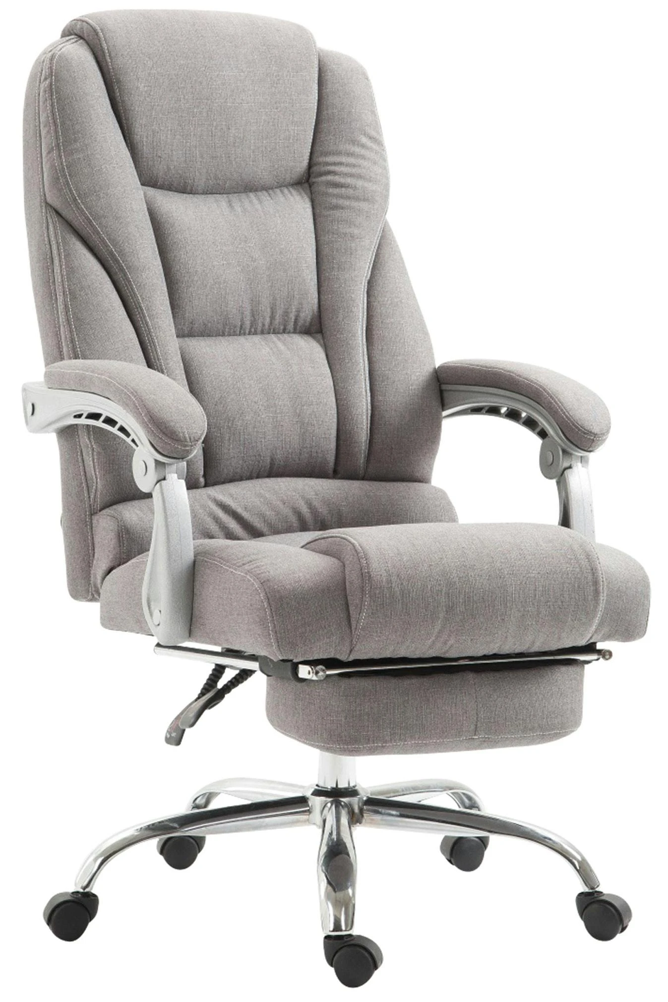 Dieser eindrucksvolle Bürostuhl Pacific überzeugt nicht nur mit seinem edlen Look, auch in Sachen Komfort und Belastbarkeit kann ihm keiner etwas vormachen. Seine gute Polsterung und der pflegeleichte Stoffbezug mit stilvollen Ziernähten sorgen dabei für ein angenehmes Sitzgefühl, auch bei längerer Verweildauer. Dank der stufenlos verstellbaren Sitzhöhe garantiert der Bürostuhl Pacific zudem jederzeit ein ergonomisches Sitzen. Die leicht verstellbare Fußstütze und Rückenlehne sorgen zusätzlich für eine angenehme Pause zwischendurch, bei der sich entspannt zurückgelehnt werden darf und die Beine hochgelegt werden können. Dabei steht er standsicher auf fünf Leichtlaufrollen und einem Gestell aus Metall in Chromoptik. Egal ob Hart- oder Teppichböden – man kann immer leicht und locker über den Boden rollen.