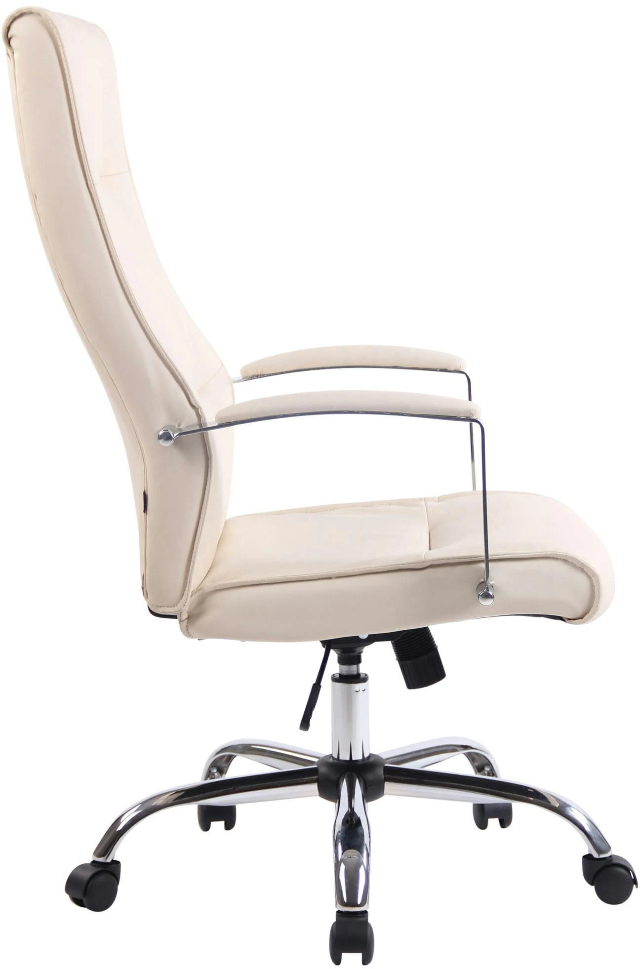 Dieser Schreibtischstuhl überzeugt nicht nur mit seinem modernen Look, auch in Sachen Komfort kann ihm keiner etwas vormachen. Der Drehstuhl ist mit einem Bezug versehen und besonders pflegeleicht. Des Weiteren ist die Sitzhöhe stufenlos verstellbar und garantiert ein ergonomisches Sitzen. Zudem ist der Computerstuhl angenehm gepolstert und mit einem Wippmechanismus versehen, der für mehr Bewegungsfreiheit sorgt. Die Stabilität ist durch das Metallgestell in Chromoptik gewährleistet. Durch die fünf Leichtlaufrollen kann man leicht und locker über den Boden rollen – egal ob auf Hart- oder Teppichböden