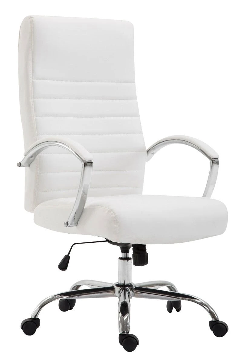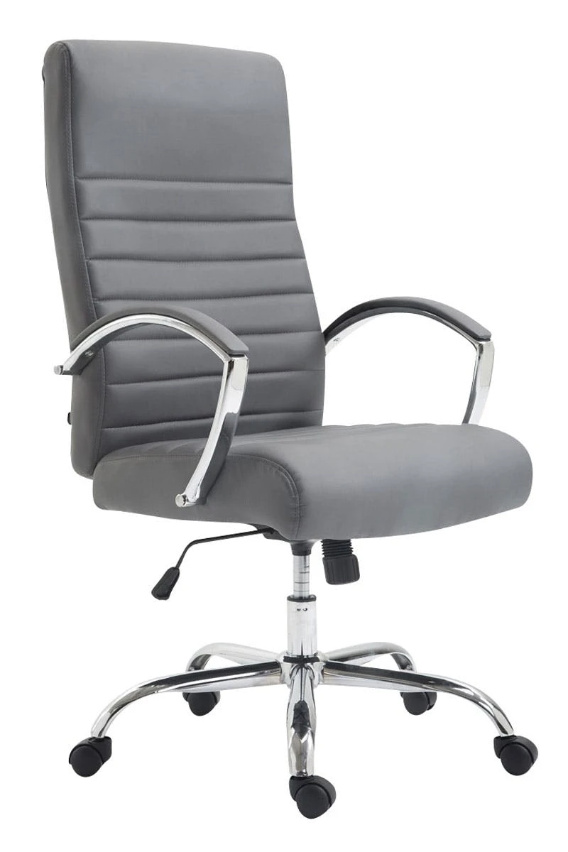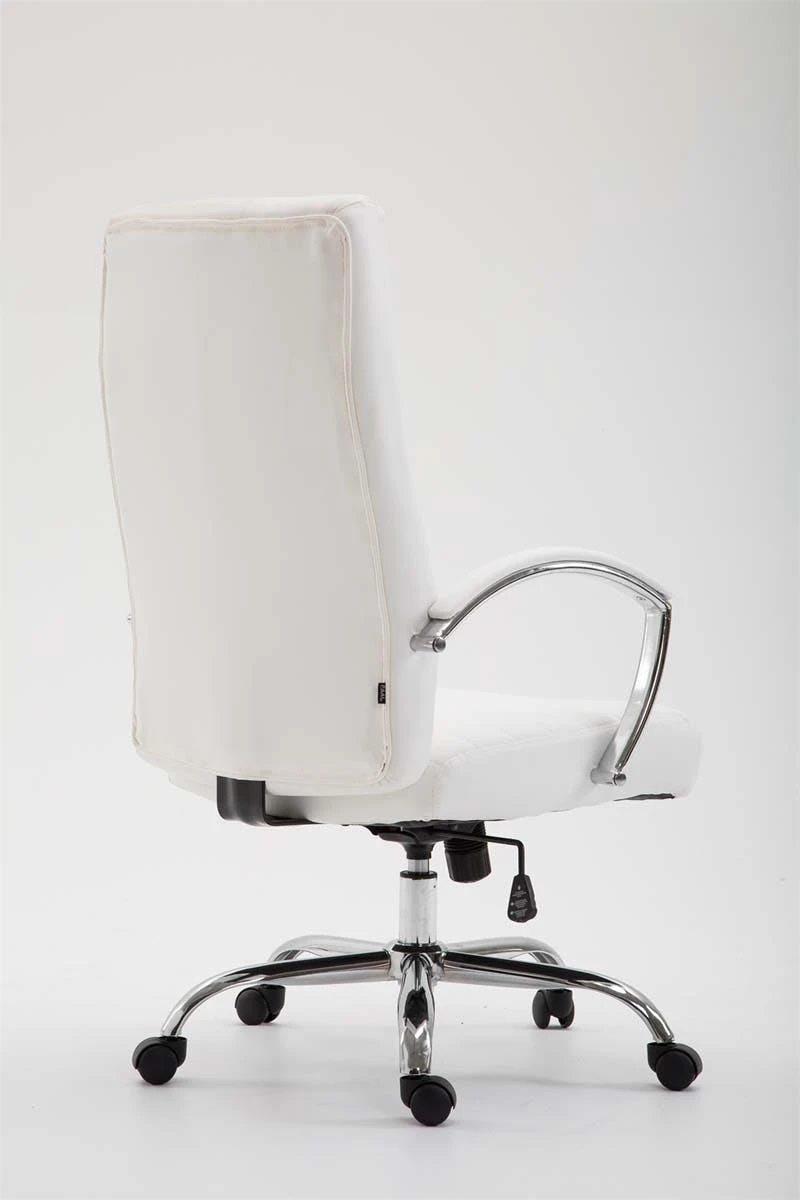 Der Bürostuhl Valais ist ideal für große und schwere Personen geeignet, da die Gasdruckfeder auf einen dauerhaften Gebrauch bis zu 136 kg ausgerichtet ist. Es handelt es sich um einen Bürostuhl mit hochwertiger Polsterung und Kunstlederbezug. Kunstlederbezüge haben den Vorteil, dass sie elastisch sind und sich bei Entlastung wieder glatt ziehen. Dies sieht nicht nur schöner aus, sondern erhöht zusätzlich die Lebensdauer des Sitzbezuges. Die Sitzhöhe ist mit dem Hebel unter dem Sitz stufenlos verstellbar, dadurch ist ergonomisches Sitzen garantiert. Der eingebaute Wippmechanismus sorgt zudem für mehr Bewegungsfreiheit. Das Gestell des Bürostuhls besteht aus Metall in Chromoptik. Standsicher steht er auf fünf robusten Kunststofflaufrollen.
