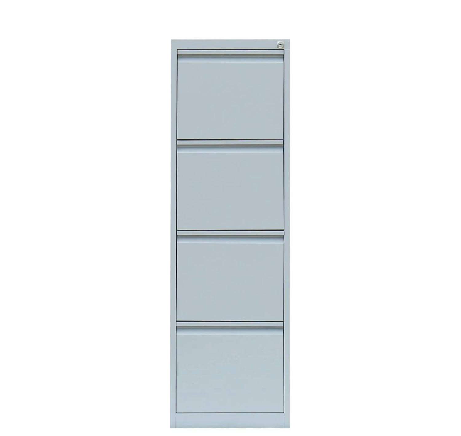 Hochwertiger Profi Stahl-Registraturschrank/Hängeregisterschrank einbahnig für Ihr Home Office oder im professionellen Büro-Einsatz. Der Stahl-Hängeregisterschrank ist mit 4 einbahnigen Schubladen und einer Stahl-Abdeckplatte ausgestattet und bietet Stauraum für DIN A4 Hängemappen. Die Schubladen mit geschlossenen Böden, auf Präzisions-Teleskopführungen sind zu fast 100% ausziehbar und mit Auszugssperren versehen. Die Auszugssperren verhindern des gleichzeitigen Öffnen aller Schubladen und somit das Umkippen des Schrankes. Die durchgehende Griffleiste ermöglicht ein leichtes und angenehmes Öffnen der Schubladen. Die Schubladen sind zentral verschließbar durch ein Zylinderschloss inkl. 2 Schlüssel. Aufklebbare Etikettenfenster sind beiliegend. Der Schrank ist fertig montiert. Der Korpus und die Schubladen sind pulverbeschichtet. Maße: 1320 x 400 x 620 mm (Höhe x Breite x Tiefe) Material: Langlebige, geschweißte Stahlblechkonstruktion Farbe: RAL 7035 Lichtgrau