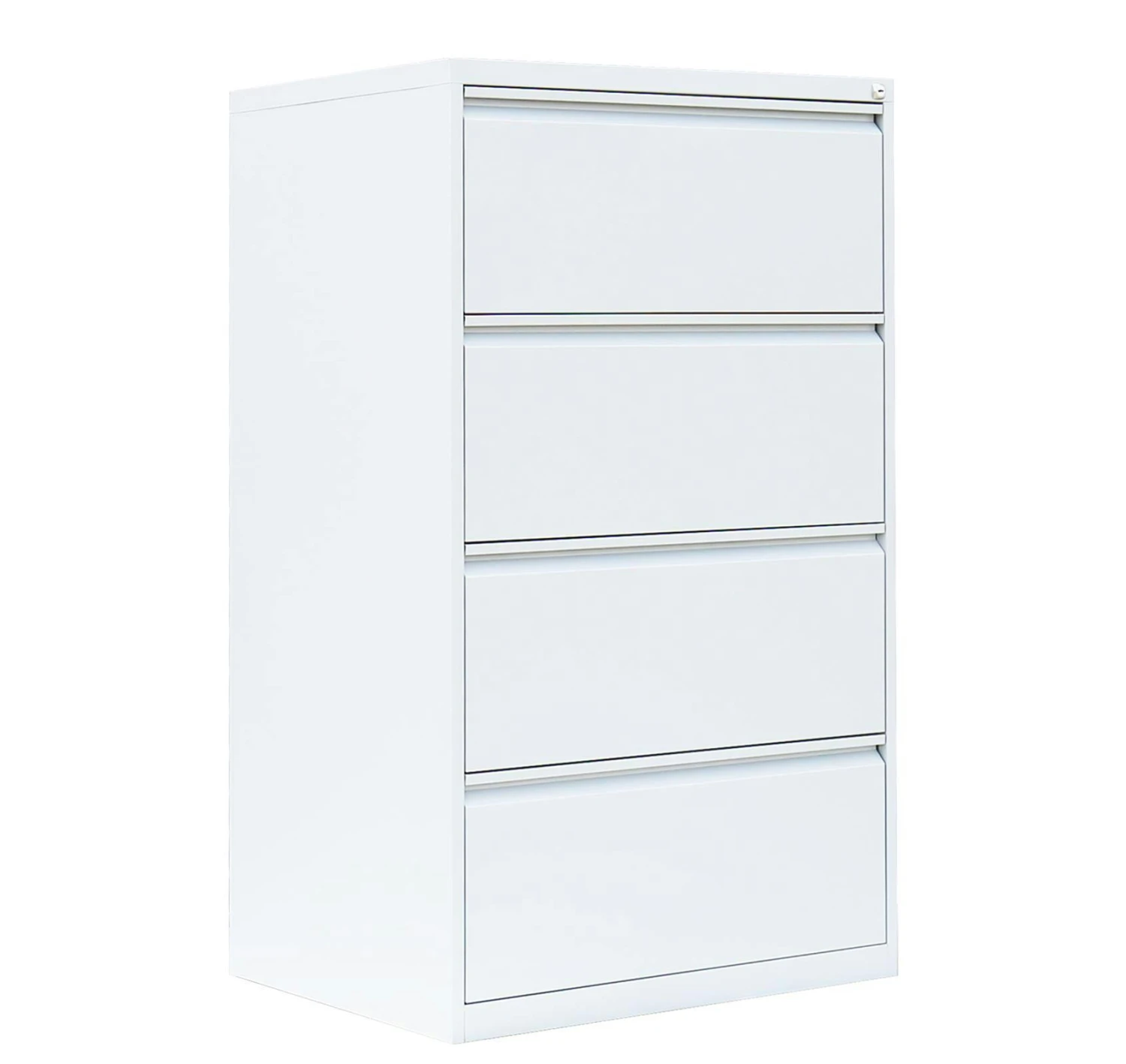 Hochwertiger Profi Stahl-Registraturschrank/Hängeregisterschrank zweibahnig für Ihr Home Office oder im professionellen Büro-Einsatz. Der Stahl-Hängeregisterschrank ist mit 4 zweibahnigen Schubladen und einer Stahl-Abdeckplatte ausgestattet und bietet Stauraum für DIN A4 Hängemappen. Schubladen mit geschlossenen Böden, auf Präzisions-Teleskopführungen sind zu fast 100% ausziehbar und mit Auszugssperren versehen. Die Auszugssperren verhindern des gleichzeitigen Öffnen aller Schubladen und somit das Umkippen des Schrankes. Die durchgehende Griffleiste ermöglicht ein leichtes und angenehmes Öffnen der Schubladen. Die Schubladen sind zentral verschließbar durch ein Zylinderschloss inkl. 2 Schlüssel. Aufklebbare Etikettenfenster sind beiliegend. Der Schrank ist fertig montiert. Der Korpus und die Schubladen sind pulverbeschichtet. Maße: 1320 x 760 x 620 mm (Höhe x Breite x Tiefe) Material: Langlebige, geschweißte Stahlblechkonstruktion Farbe: RAL 7035 Lichtgrau