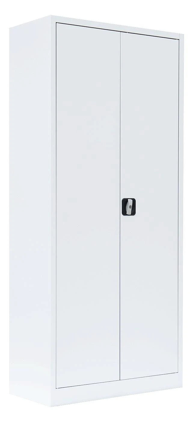 Holz-Aktenschrank ECO, Büroschrank, Ordnerschrank, mit 2 Einlegeböden, (3 Ordnerhöhen). Universell einsetzbar zur Lagerung und Ablage von Aktenordnern und Dokumenten, zum sicheren Aufbewahren (abschließbar durch Zylinderschloss) und Lagern von Werkzeug, Aufbewahrungsboxen, Verkaufsunterlagen, Katalogen, Papier und Schreibmaterial. Ideal geeignet für Containerbüros.Pflegeleichter Aktenschrank, melaminharzbeschichteter Holzspanwerkstoff nach DIN 68765 2 Fachböden, 3 OrdnerhöhenSchranktüren jeweils rechts und links angeschlagen, mittig schließendTüren mit Metallgriff90 ° ÖffnungswinkelEinlegeböden serienmäßig in Korpusfarbe ausgeführtProfil-Zylinderschloss inkl. 2 SchlüsselMit höhenverstellbaren BodengleiternLieferung: Zerlegt im KartonFarbe: LichtgrauMaße in mm ca.: Höhe: 1080 mm, Breite: 800 mm, Tiefe: 395 mm