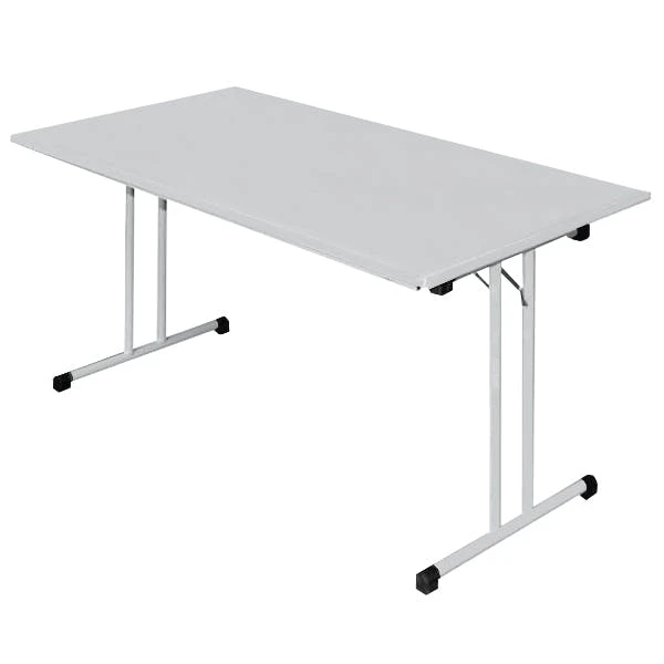 Klapptisch, flexibel einsetzbar für Büros, Betriebe, Raumcontainer und öffentliche Einrichtungen. Der melaminharzbeschichte Klapptisch auf belastbarem 30 mm Stahl-Rundrohr-Gestell mit T-Füßen überzeugt auf Veranstaltungen, Seminaren, Konferenzen, aber auch als flexibel umstellbarer Arbeitsplatz durch sein belastbares und fest eingerastetes Stahl-Gestell und seine besonders leicht zu reinigende Oberfläche.Langlebiges, pflegeleichtes, verschweißtes Stahl-Gestell, T-Fuß 30 mm Stahl-Rundrohr-Gestell Stapelbar durch Distanzhalter am Tischgestell Sicherheitsarretierung in aufgebauter Position 25 mm starke, melaminharzbeschichtete Tischplatte aus Holzspanwerkstoff Tisch- und Arbeitshöhe 750 mm nach DIN-Norm Höhenverstellbare Bodengleiter zur Schonung des Fußbodens Gestell elektrostatisch, glatt pulverbeschichtet Komplett vormontiertFarbe:Gestell: RAL 7035 LichtgrauTischplatte: LichtgrauMaße in mm ca.:Höhe: 750 mmBreite: 1200 mmTiefe: 600 mm