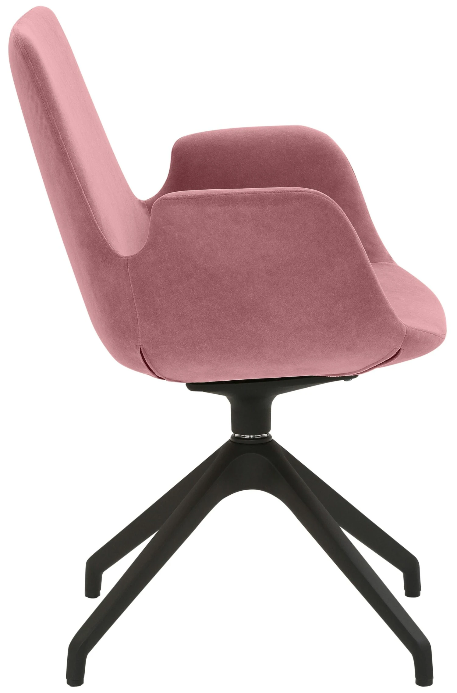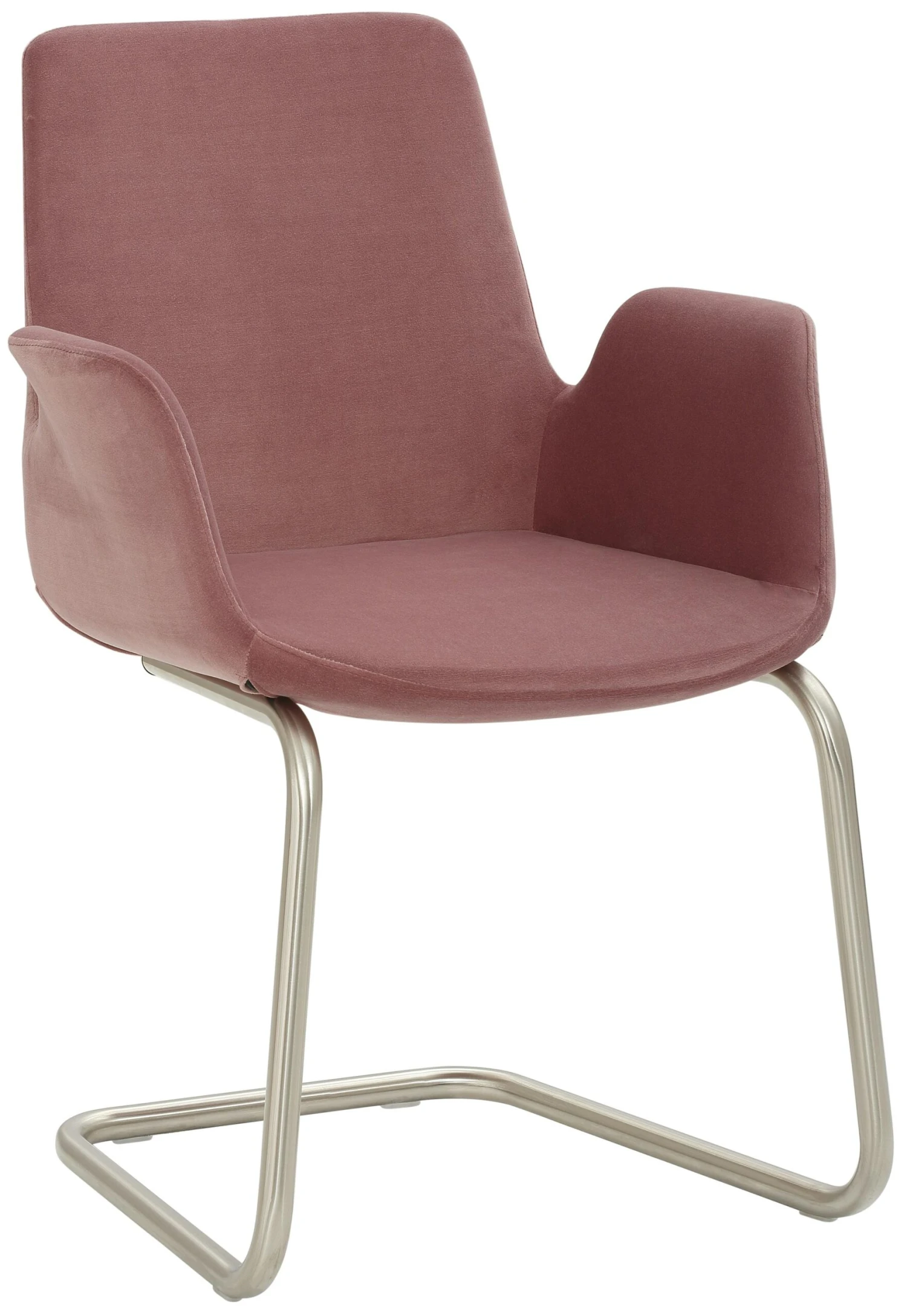 Freischwinger-Gestell, Chrom gebürstet Edelstahllook, mit integrierten Armlehnen, rundum gepolstert, Sitzhöhe 49 cm.