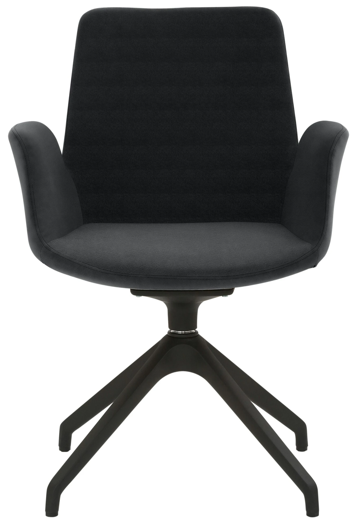 4-Fuß-Gestell, pulverbeschichtet schwarz, mit integrierten Armlehnen, rundum gepolstert, Sitzhöhe 48 cm.
