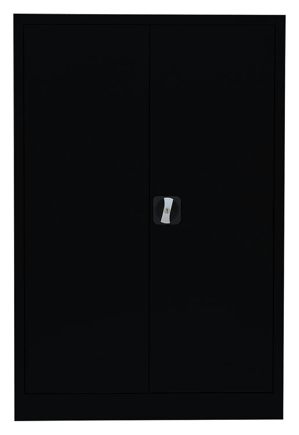 Aktenschrank, Büroschrank, Aktenschrank Metall, Ordnerschrank, Lagerschrank, Werkzeugschrank, günstig, Bestseller, mit 2 Einlegeböden (3 Ordnerhöhen). Universell einsetzbar zur Lagerung und Ablage von Aktenordnern und Dokumenten, zum sicheren Aufbewahren (abschließbar durch Schubstangen-Zylinderschloss) und Lagern von Werkzeug, Aufbewahrungsboxen, Verkaufsunterlagen, Katalogen, Papier und Schreibmaterial. Ideal geeignet für Büros, Logistik, Lager, Werkstätten und Containerbüros.Langlebige, pflegeleichte, verschweißte Stahl-Konstruktion 2 Fachböden, 3 Ordnerhöhen Schranktüren jeweils rechts und links angeschlagen, an gefederten Stiftscharnieren befestigt, mittig schließend Kastenverstärkung für eine erhöhte Türstabilität Flexible Nutzung als Aktenschrank oder Regal durch herausnehmbare Flügeltüren Geräuschdämpfende Kunststoff-Türanschlagspuffer serienmäßig Individuelle, flexible Innen-Einteilung durch höhenverstellbare Einlegeböden, im 5 cm-Raster Tragkraft der herausnehmbaren Einlegeböden bis zu 65 kg Einlegeböden serienmäßig in Korpusfarbe ausgeführt 2-Wege-Schubstangenzylinderschloss mit Drehgriff, inkl. 2 Schlüssel Korpus und Türen elektrostatisch, glatt pulverbeschichtet Qualität und Sicherheit Komplett verschweißt, keine Montage erforderlich, nur Fachböden müssen eingelegt werden