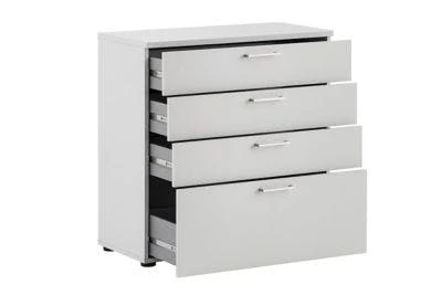 Die Oberflächen sind mit Melaminharz der Güteklasse E1 beschichtet und dadurch besonders robust. Die Schubladen haben durch die kugelgelagerten Schienen eine hohe Tragkraft und bieten somit jede Menge Platz. Um Deinen Boden vor Gebrauchsspuren zu schützen, ist die Unterseite des Mehrzweckschranks mit vier Gleitern versehen worden. Der Aufbau ist einfach und die Aufbauanleitung sehr leicht verständlich. Der Schubladenschrank bietet genügend Platz für Akten oder auch andere Unterlagen.