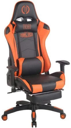 Der Bürostuhl Turbo XL überzeugt nicht nur mit seinem sportlichen Look, auch in Sachen Komfort und Belastbarkeit kann ihm keiner etwas vormachen. Die hochwertige Polsterung sorgt für ein komfortables Sitzgefühl, welches auch bei längerem Verweilen bestehen bleibt. Die leicht verstellbare Fußstütze und Rückenlehne sorgen zusätzlich für eine angenehme Pause zwischendurch, bei der sich entspannt zurückgelehnt werden darf und die Beine hochgelegt werden können. Dank der stufenlos verstellbaren Sitzhöhe und der abnehmbaren Nacken- und Rückenkissen garantiert der Schreibtischstuhl jederzeit ein ergonomisches Sitzen. Auch die Höhe der schwenkbaren Armlehnen ist regulierbar. Der Computerstuhl steht standsicher auf fünf Leichtlaufrollen und einem Gestell aus Kunststoff.