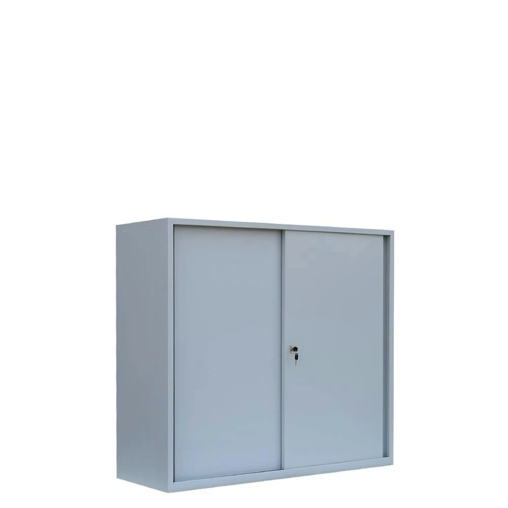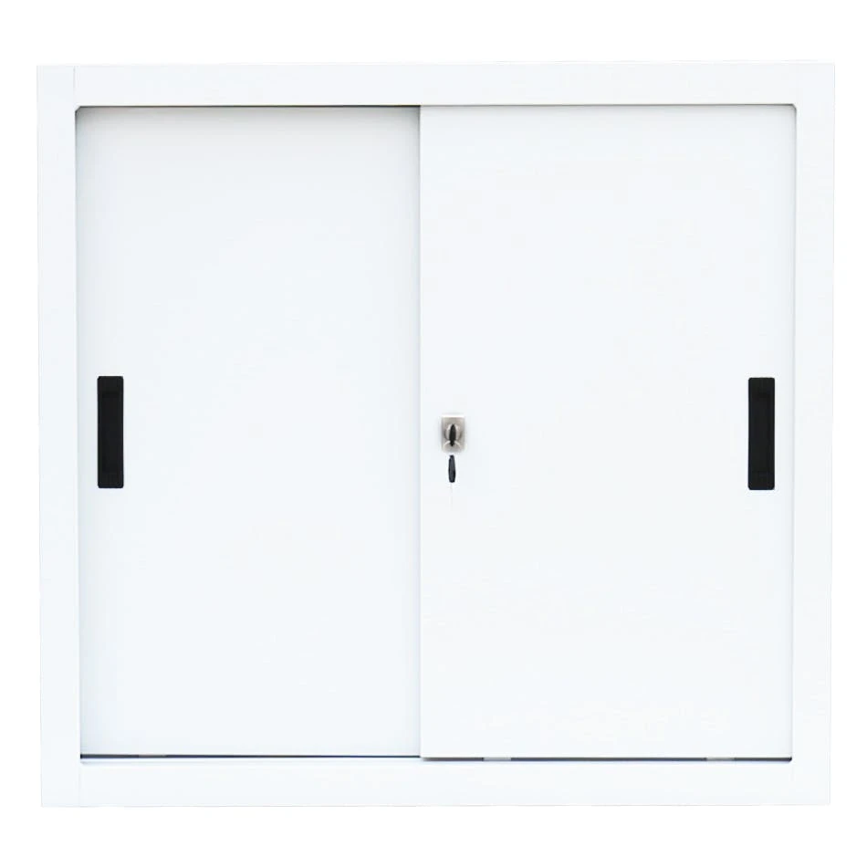 Hochwertiger Profi Stahl-Schiebetürenschrank/Sideboard 80 cm breit für Ihr Home Office oder im professionellen Büro-Einsatz. Langlebige, pflegeleichte, verschweißte Stahl-Konstruktion Optimal geeignet für enge Raumverhältnisse 1 Fachboden, 2 Ordnerhöhen Leichtläufige Schiebetüren in Schienenführung mit Kugellagerrollen und praktischen Griffmulden Serienmäßig mit geräuschdämpfenden Anschlagspuffern Fachböden im Raster höhenverstellbar Fachbodentragkraft bis 50 kg Fachböden serienmäßig in Korpusfarbe ausgeführt Bis 10 mm höhenverstellbare Drehfüße zum Niveauausgleich Dreh-Druckzylinderschloss inkl. 2 Schlüssel Korpus und Schubladen elektrostatisch, glatt pulverbeschichtet Qualität und Sicherheit Lieferung: Komplett verschweißt, keine Montage erforderlich Maße: 750 x 800 x 450 mm (HxBxT) Farbe: Korpus in RAL 9003 Signalweiß, Türen in RAL 9003 Signalweiß