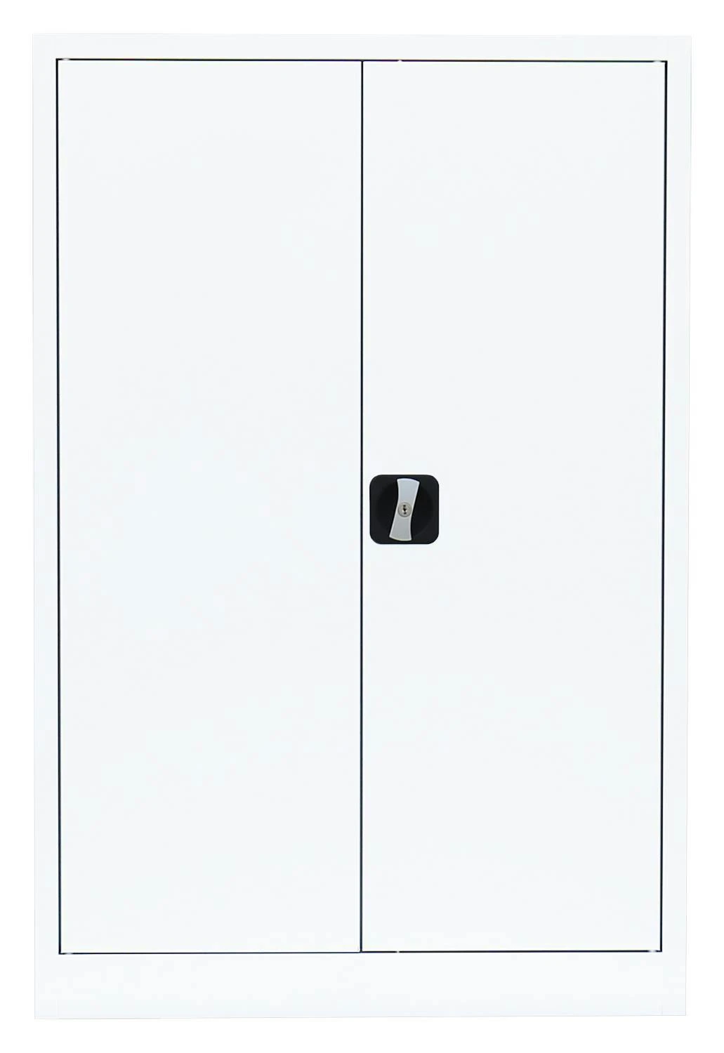 Aktenschrank, Büroschrank, Aktenschrank Metall, Ordnerschrank, Lagerschrank, Werkzeugschrank, mit 2 Einlegeböden (3 Ordnerhöhen). Universell einsetzbar zur Lagerung und Ablage von Aktenordnern und Dokumenten, zum sicheren Aufbewahren (abschließbar durch Schubstangen-Zylinderschloss) und Lagern von Werkzeug, Aufbewahrungsboxen, Verkaufsunterlagen, Katalogen, Papier und Schreibmaterial. Ideal geeignet für Büros, Logistik, Lager, Werkstätten und Containerbüros.Langlebige, pflegeleichte, verschweißte Stahl-Konstruktion 2 Fachböden, 3 Ordnerhöhen Schranktüren jeweils rechts und links angeschlagen, an gefederten Stiftscharnieren befestigt, mittig schließend Kastenverstärkung für eine erhöhte Türstabilität Flexible Nutzung als Aktenschrank oder Regal durch herausnehmbare Flügeltüren Geräuschdämpfende Kunststoff-Türanschlagspuffer serienmäßig Individuelle, flexible Innen-Einteilung durch höhenverstellbare Einlegeböden, im 5 cm-Raster Tragkraft der herausnehmbaren Einlegeböden bis zu 65 kg Einlegeböden serienmäßig in Korpusfarbe ausgeführt 2-Wege-Schubstangenzylinderschloss mit Drehgriff, inkl. 2 Schlüssel Korpus und Türen elektrostatisch, glatt pulverbeschichtet Qualität und Sicherheit Komplett verschweißt, keine Montage erforderlich, nur Fachböden müssen eingelegt werden