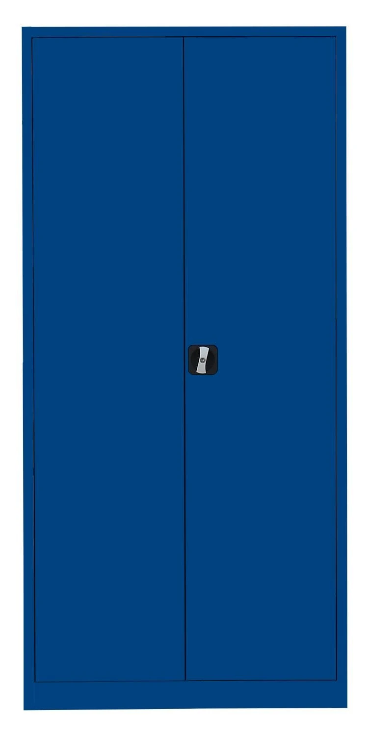 Aktenschrank, Büroschrank, Aktenschrank Metall, Ordnerschrank, Lagerschrank, Werkzeugschrank, mit 4 Einlegeböden (5 Ordnerhöhen). Universell einsetzbar zur Lagerung und Ablage von Aktenordnern und Dokumenten, zum sicheren Aufbewahren (abschließbar durch Schubstangen-Zylinderschloss) und Lagern von Werkzeug, Aufbewahrungsboxen, Verkaufsunterlagen, Katalogen, Papier und Schreibmaterial. Ideal geeignet für Büros, Logistik, Lager, Werkstätten sowie für den Privatgebrauch im Keller oder in der Garage.Langlebige, pflegeleichte, verschweißte Stahl-Konstruktion4 Fachböden, 5 Ordnerhöhen Schranktüren jeweils rechts und links angeschlagen, an gefederten Stiftscharnieren befestigt, mittig schließend Kastenverstärkung für eine erhöhte Türstabilität Flexible Nutzung als Aktenschrank oder Regal durch herausnehmbare Flügeltüren Geräuschdämpfende Kunststoff-Türanschlagspuffer serienmäßig Individuelle, flexible Innen-Einteilung durch höhenverstellbare Einlegeböden, im 5 cm-Raster Tragkraft der herausnehmbaren Einlegeböden bis zu 65 kg Einlegeböden serienmäßig in Korpusfarbe ausgeführt 2-Wege-Schubstangenzylinderschloss mit Drehgriff, inkl. 2 Schlüssel Korpus und Türen elektrostatisch, glatt pulverbeschichtet Qualität und Sicherheit Komplett verschweißt, keine Montage erforderlich, nur Fachböden müssen eingelegt werdenFarbe: Korpus: Enzianblau, Türen: Enzianblau