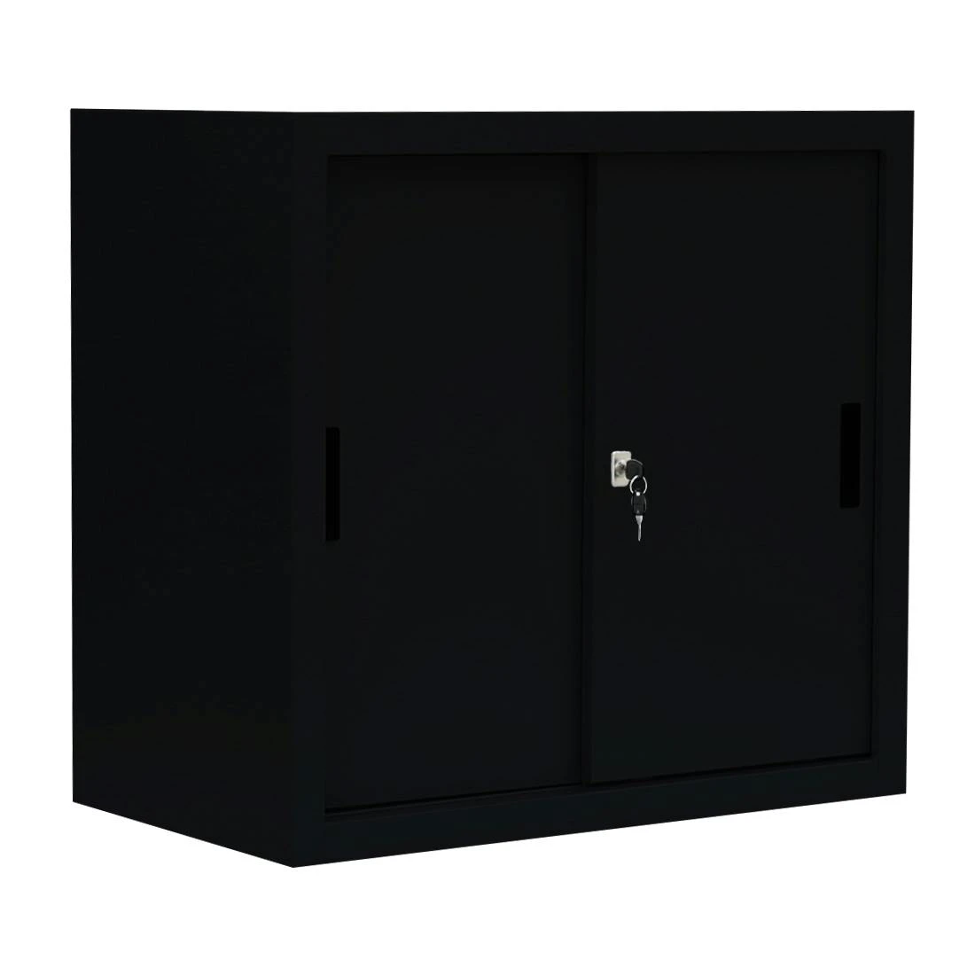 System Schiebetürenschrank BASIC mit 2 Fachböden für 3 OrdnerhöhenFronten, Mittelseiten, Seiten und Fachboden aus 16 mm, Ober- und Unterboden aus 22 mm melaminharzbeschichtetem Holzspanwerkstoff nach DIN 68765Rückwand, innen silber (keine Sichtrückwand)2 Fachboden für 3 OrdnerhöhenSchiebetüren mit Streifengriff und gleichschließendem Druckzylinderschloss5 Sockelgleiter – 10 mm höhenjustierbar durch den BodenStapelbarzerlegt im Karton zur SelbstmontageFarbe: ahornMaße: H 1100 x B 1200 x T 400 mm