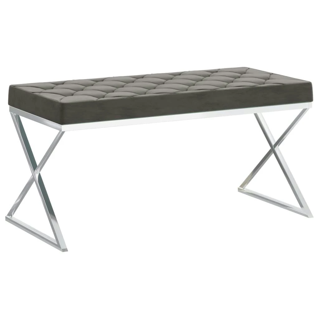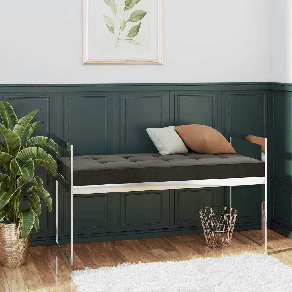 Diese mit Samt bezogene Bank mit Edelstahlständer verfügt über ein modernes Design und verleiht Ihrem Wohnraum einen Hauch von Stil und Eleganz.
