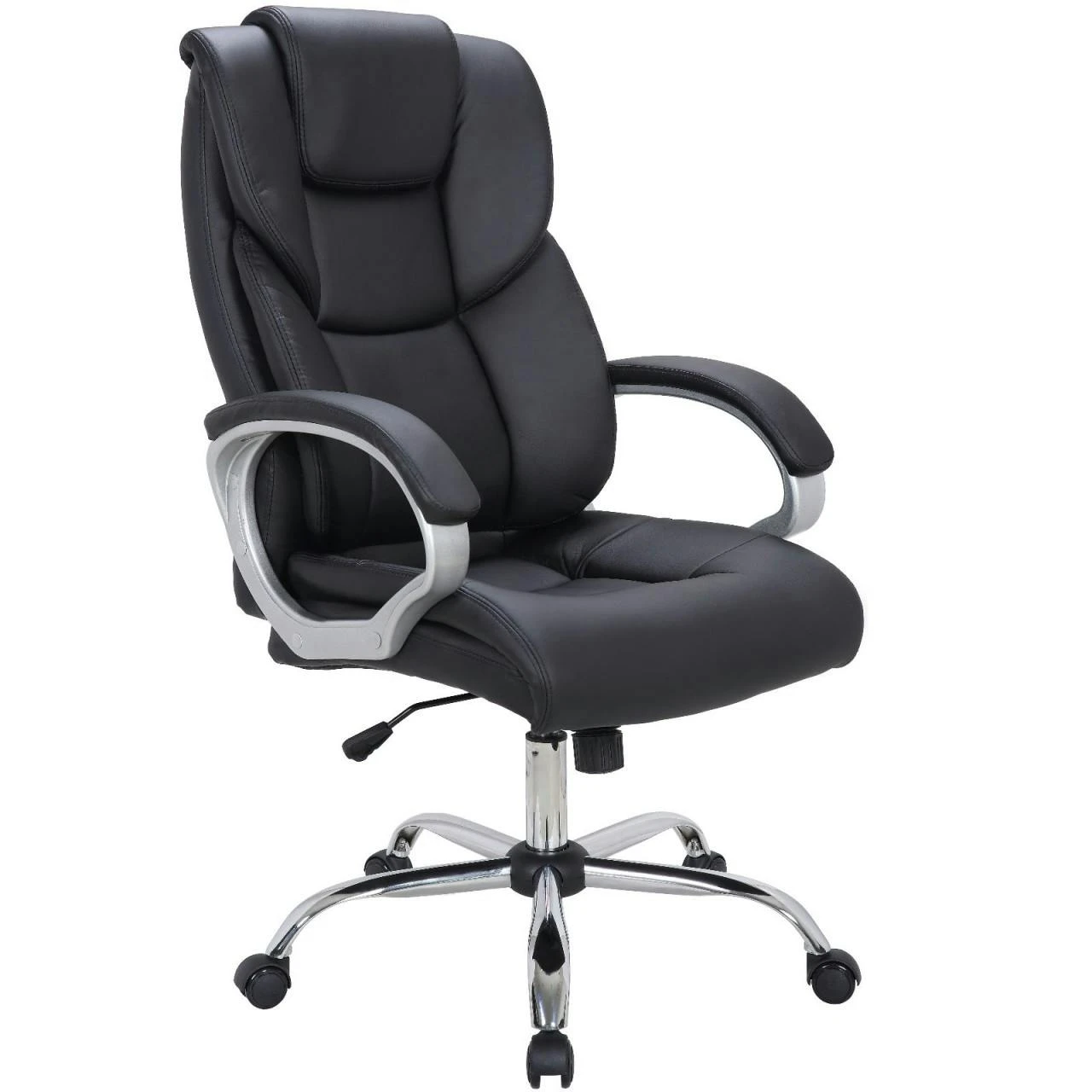 Dieser Designer Bürostuhl ist sehr hochwertig verarbeitet und mit vielen tollen Designs versehen. Die mit einem robusten Kunstlederbezug versehene Sitzfläche überzeugt mit der dicken und bequemen Polsterung, welche das Sitzen auf dem Bürostuhl sehr angenehm macht. Der komfortable Bürostuhl verfügt über eine, in der hohen Rückenlehne integrierte gepolsterte Kopfstütze, die ermüdungsfreies und entspanntes Arbeiten unterstützt.